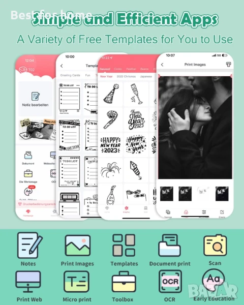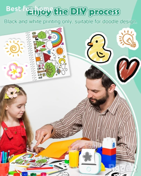 Печат на стикери: Мини принтер за стикери. Позволява ви да изрязвате отпечатаните снимки в различни форми, да създавате свои собствени стикери и да декорирате книги, тетрадки и др. Това креативно „Направи си сам“ преживяване може да стимулира въображението и ръчните умения. Мини принтерът може да отпечатва ваши собствени снимки и да споделя красиви моменти с приятели и семейство, което подобрява комуникацията и взаимодействието между родители и деца и др.