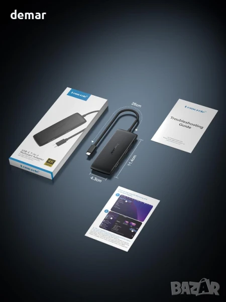 Докинг станция Lemorele за два монитора - 7-в-1 USB-C хъб с 2 HDMI 4K@60Hz, USB 3.0 и 3хUSB 2.0