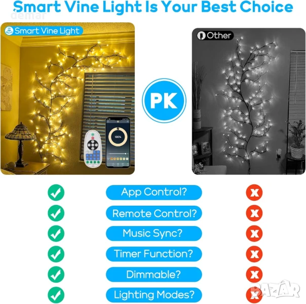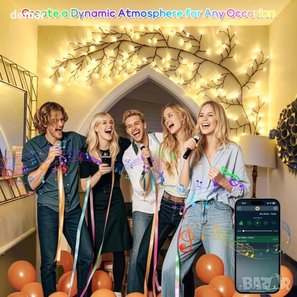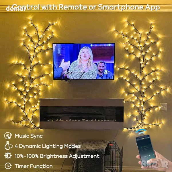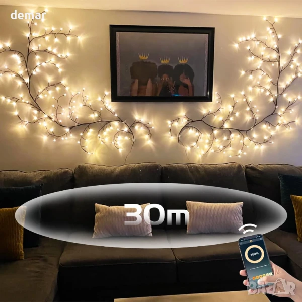 Умни лампички за домашен декор от клонки, 144 LED, приложение и дистанционно, синхронизирне с музика