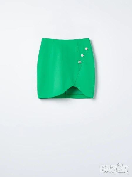 зелено. Допълнителен акцент от декоративни бижута – сребристи копчета.