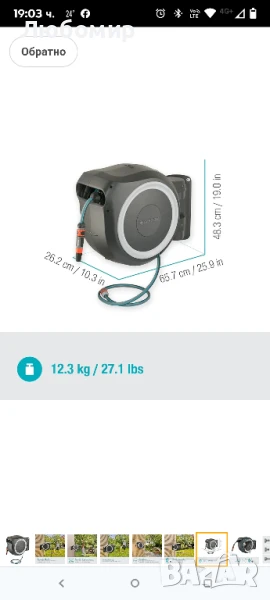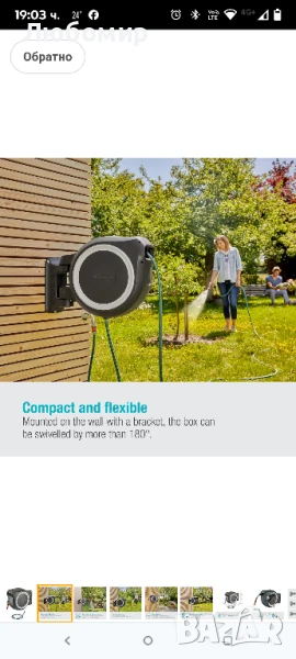 Gardena за стенен монтаж, дълга L (бяла), 30 м: Универсална система за поливане за големи градини, въртяща се кутия за маркуч, включваща 30 м маркуч Gardena и комплект за монтаж .Дълготрайно навиване: Маркучът може да се навива автоматично, безопасно и надеждно благодарение на центробежната спирачка и вградения водач за маркуч. Той се навива равномерно без усукване или прегъване.Спестяващо място, гъвкаво съхранение: Кутията може да се завърта на повече от 180° и е предназначена за стенен монтаж – дюзи, пистолети за пръскане и четки за почистване могат да се съхраняват на стенната конзола, където ще са винаги под ръка.Удобно и лесно: Без навеждане, без навиване на маркуча и без мръсни ръце – това са нещата, които градинарите ценят в стенните кутии за маркучи Gardena. Също така няма опасност от спъване в маркуч, който е оставен без да се въргаля.Защита от замръзване: Иновативната система за защита от замръзване Gardena гарантира, че стенната кутия за маркуч RollUp L е устойчива на замръзване и може да стои навън през цялата година.