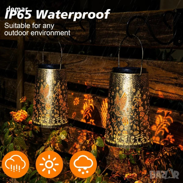 Соларни фенери Glostravier Hummingbird за външна употреба, пакет от 2 висящи соларни лампи