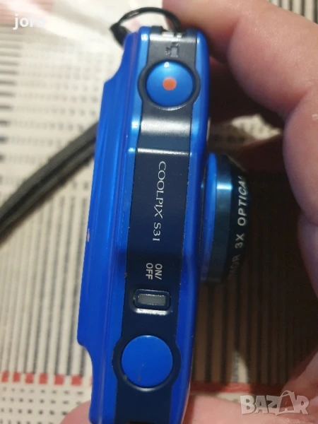 nikon coolpix s31 като нов.водоустойчив фотоапарат, подходящ за семейства, обновена версия на S30 . Този нов модел е още по-устойчив на удари и използва акумулаторна литиево-йонна батерия вместо AA батерии. S31 се предлага в синьо,Nikon Coolpix S31 има 10-мегапикселов CCD сензор и обектив с 3x оптично увеличение, което е еквивалентно на 35 мм фокусно разстояние от 29-87 мм, с функция за намаляване на размазването при движение, която помага за заснемането на резки снимки. Той е водоустойчив до 5 м, удароустойчив до 1,2 м и прахоустойчив. Има и забавни филтри, включително „рибешко око“ и „селективни цветове“.Nikon Coolpix S31 се различава от повечето други компактни фотоапарати по това, че има четири бутона отляво на екрана - те се използват за управление на повечето опции. Контролът на увеличението е отдясно, с бутон за включване/изключване отгоре и лесни за използване бутони за освобождаване на затвора и стартиране на видео от двете страни. Менютата са съставени от голям текст и удебелени, цветни икони, като опциите се избират с помощта на четирите бутона от лявата страна на фотоапарата.