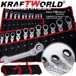 Внесете професионализъм във всяка ремонтна дейност с пълния комплект тресчотни ключове от – 22 части, от 6 до 32 мм, с уникално чупещо рамо за максимална гъвкавост и достъп до труднодостъпни места.