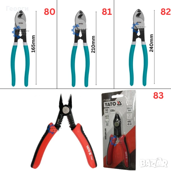 83. Клещи резачки YATO 140мм (Капацитет на рязане: 0.8 - 2.6 мм2) - 11,50 лв. ( 5,88 € )