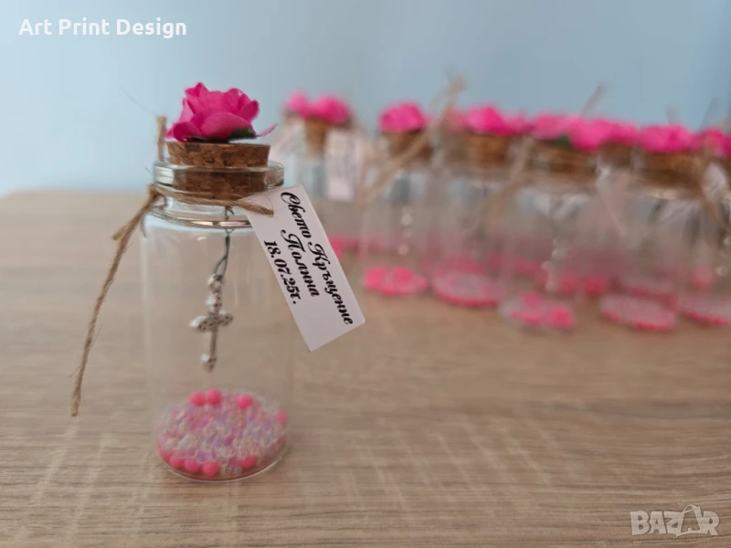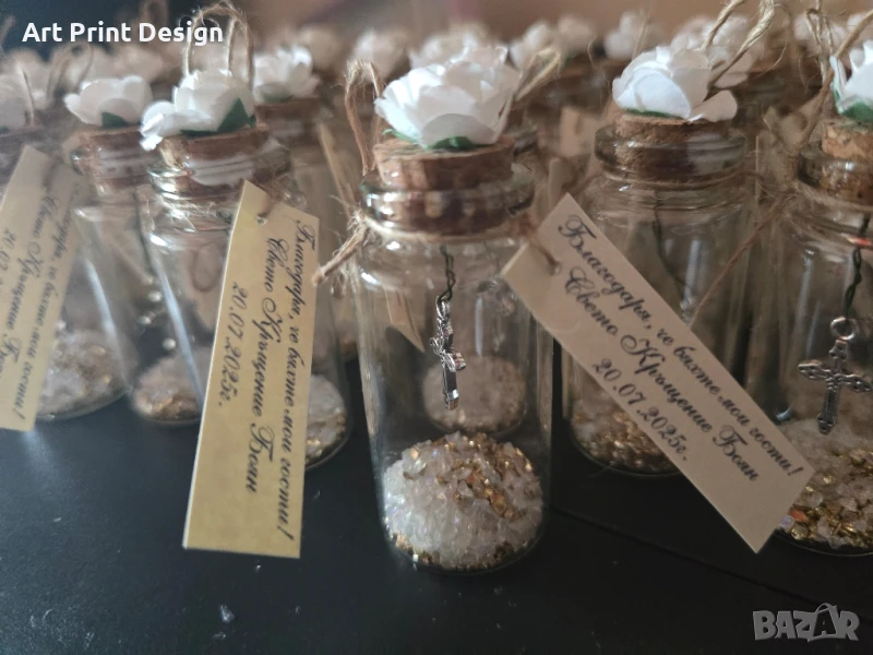 Сувенири Стъкленица за кръщене, рожден ден, юбилей, сватба,погача