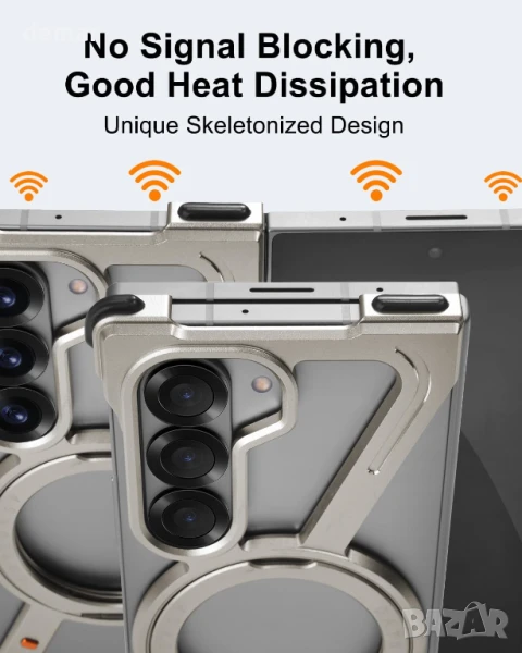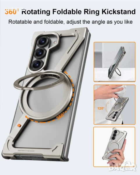Този безрамков калъф за Samsung Fold 6 се монтира лесно с едно щракване и без инструменти, използвайки двукомпонентен дизайн без винтове. Неговата елегантна метална рамка без рамки подобрява разсейването на топлината, запазва оригиналното усещане на телефона и поддържа непрекъснато зареждане. Изработен от лек алуминий, използван в самолети, той разполага със скрит магнитен пръстен за стойка, който се завърта на 360° и се обръща на 120° за гъвкаво гледане. Четириъгълните въздушни възглавници осигуряват защита от падане, а повдигнатите ръбове предпазват екрана и камерата от надраскване и удар.