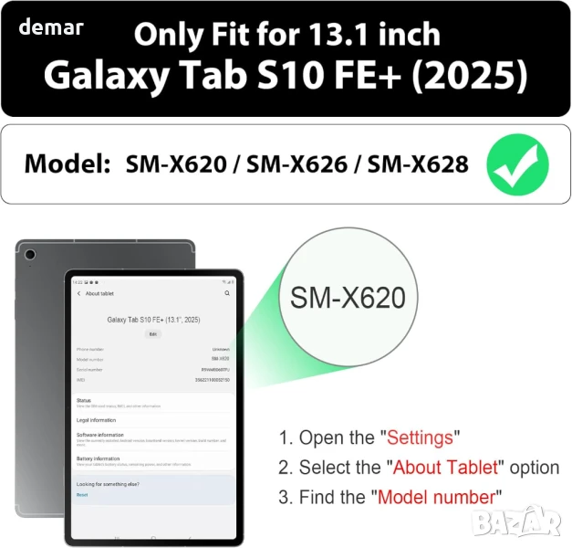Калъф SEYMAC за Samsung Galaxy Tab S10 FE+ Plus 13.1 инча 2025 SM-X620 X626 X626B, черен
