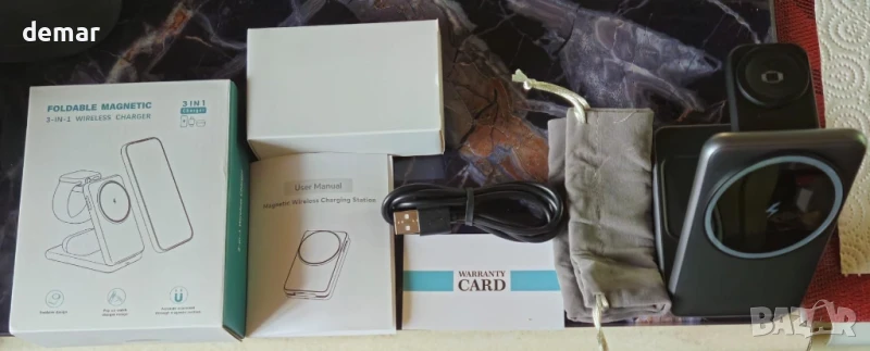 Безжична зарядна станция за Mag-Safe Charger 3 в 1, сгъваема