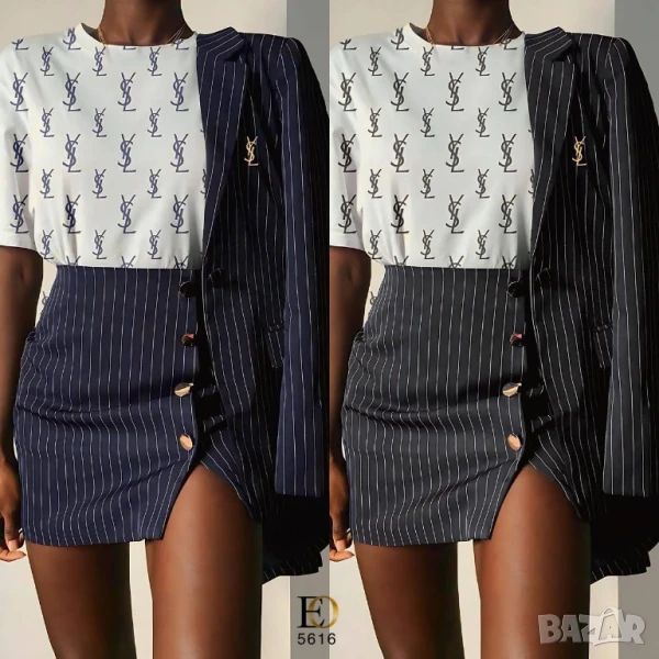 дамски комплекти сако, къса пола с цепка и тениска ysl saint laurent