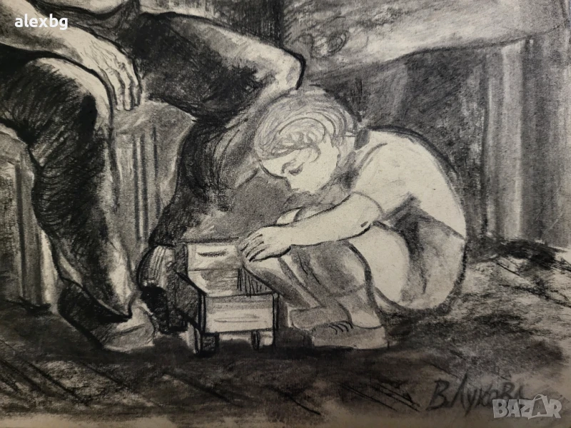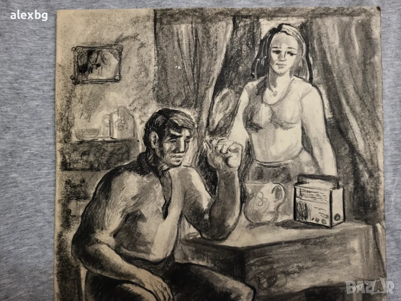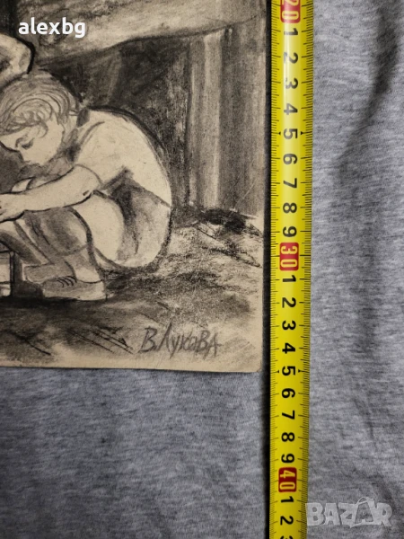 Вера Лукова картина рисувана с въглен размер 35х24.5см