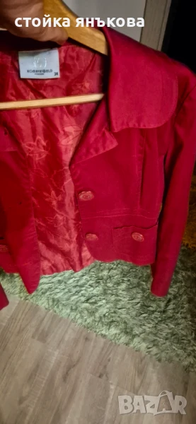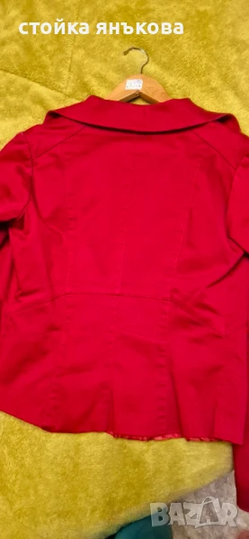 Продавам червено дамско сако, размерът е 36. Цветът е тъмно червен