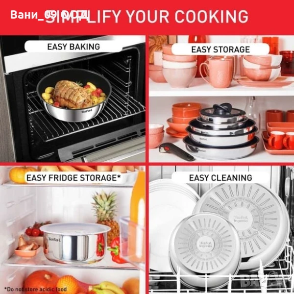 Този комплект съдържа всичко необходимо за кухнята. Дизайнът е компактен, като съдовете се подреждат един в друг, без да заемат излишно място. Дръжката се сваля от всеки съд и издържа до 10 кг.