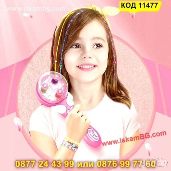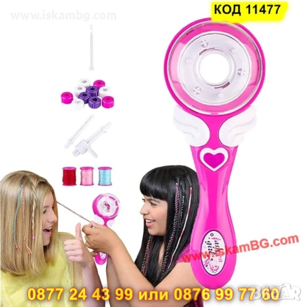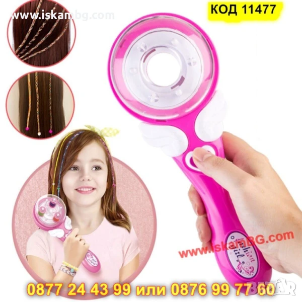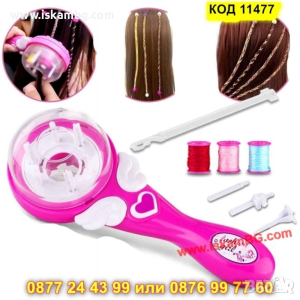 - Включени аксесоари: 1 машина за сплитане + набор от цветни конци, мъниста и допълнителни елементи за декориране.