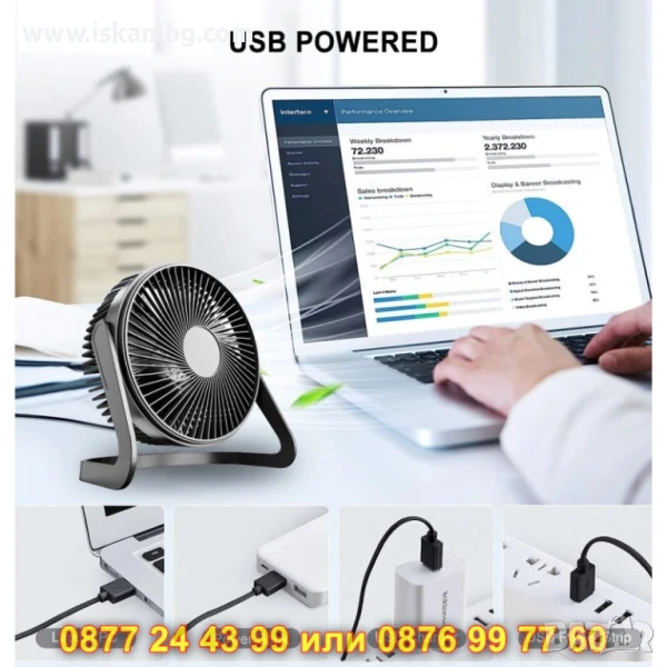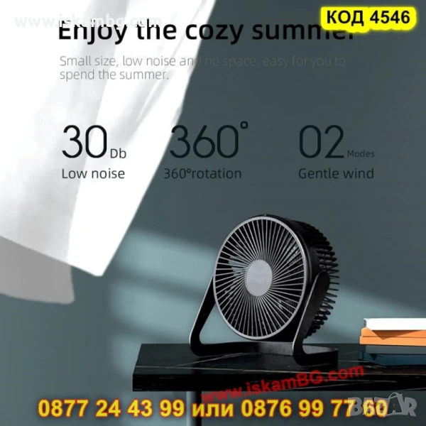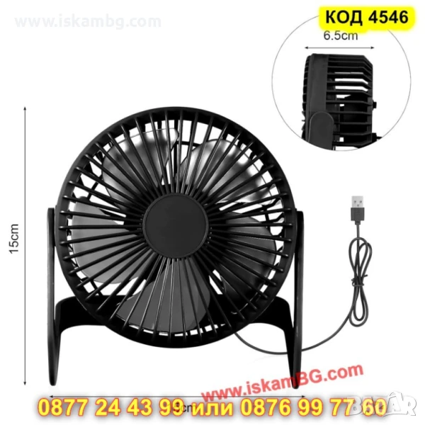 Тих настолен USB вентилатор за офис и дом - КОД 4546