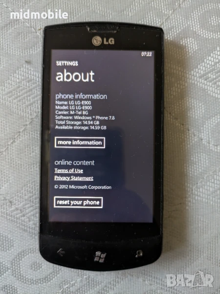 LG E900, снимка 1 - LG - 50598256 LG E900, снимка 2 - LG - 50598256 LG E900, снимка 3 - LG - 50598256 LG E900, снимка 4 - LG - 50598256 1/4