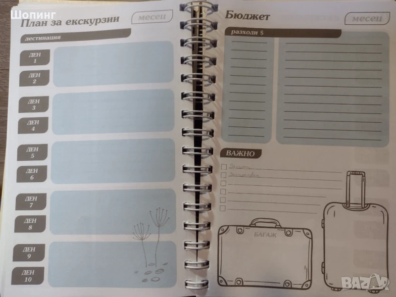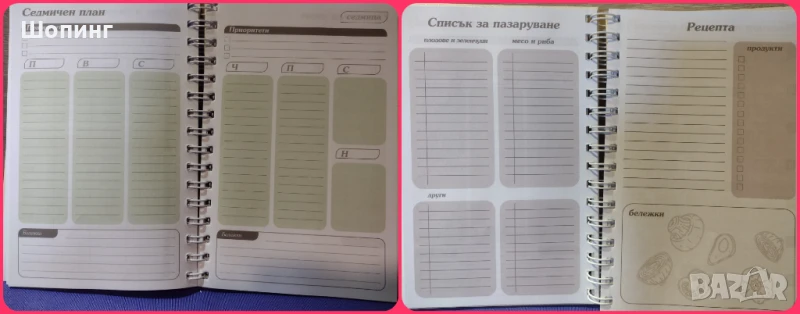 Седмичен планер - голям тефтер-бележник с твърди корици, цветен, спирала, много листове с илюстрации и разграфени - дневно, седмично, месечно. Ще можете да организирате цялото си ежедневие.
