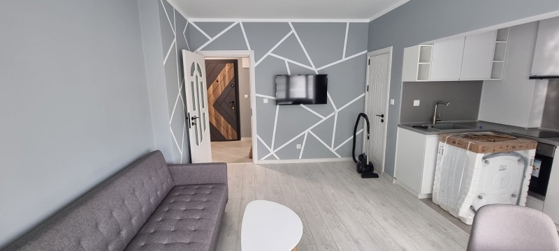 Дава се под наем Луксозен двустаен апартамент в Идеален център с площ от 50 квадратни метра, състоящ се от коридор, баня с тоалетна, хол с кухненски бокс, спалня, мокро помещение и тераса. Обзавеждането е чисто ново!! Наем 1200лв. и депозит в размер на един наем!