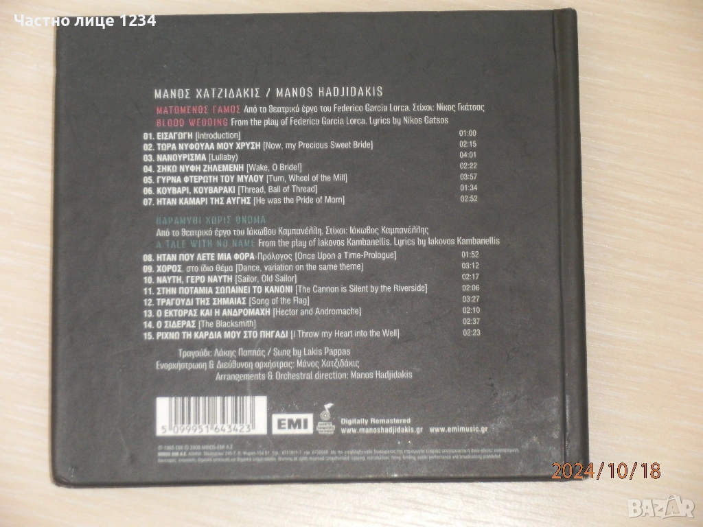 Манос Хадзидакис / Μάνος Χατζιδάκις Ματωμένος Γάμος / Παραμύθι Χωρίς Όνομα - 1965 / 2008, - 9 лв.