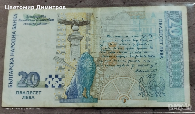 20 лева 1999 година , снимка 1 - Нумизматика и бонистика - 50600722 20 лева 1999 година , снимка 2 - Нумизматика и бонистика - 50600722 20 лева 1999 година , снимка 3 - Нумизматика и бонистика - 50600722 20 лева 1999 година , снимка 4 - Нумизматика и бонистика - 50600722 1/4