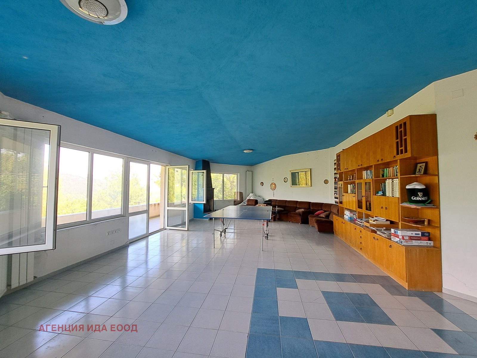 Втори етаж - просторно входно фоайе, огромна дневна с камина, и с прозорци по цялата дължина, с гледка към двора и Витоша, кухня, четири стаи, едната със собствена баня с тоалетна, втора баня с тоалетна, килер - мокро помещение, тераса около целия етаж, на която се излиза от всяка стая.