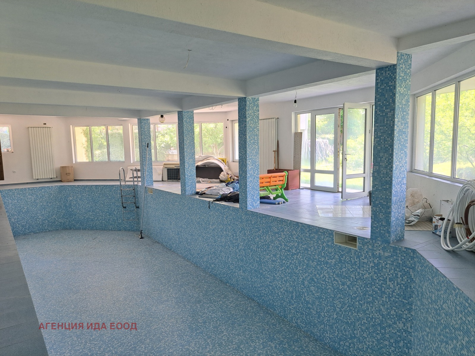 Първи етаж има басейн, със санитарен възел, дневна с кухня, стая, баня с тоалетна , складово помещение.