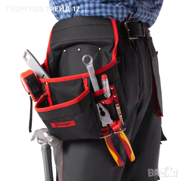 - В 8 джоба с различен размер можете да поставите отвертки, щипки и други инструменти, както и части и крепежи.