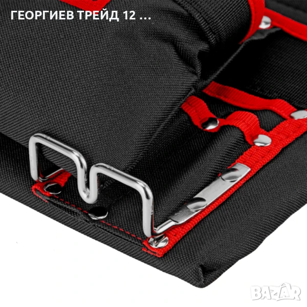 - Металните държачи за чук и клещи са закрепени отвън на чантата, което осигурява бърз достъп до тях.
