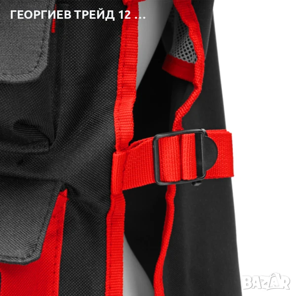 - 8 джоба с различен размер позволяват удобно разполагане на малки и големи инструменти, части, моливи и т.н.