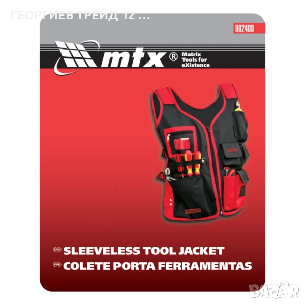 Жилетка за инструменти MTX 902469 510 х 600 мм е предназначена за съхранение и пренасяне на инструменти по време на работа. С нея всичко необходимо е на разстояние и под ръка, като ръцете остават свободни. Жилетката значително повишава удобството на работа на големи обекти и на височина, затова е подходяща за строители, ключари, монтажници и други.