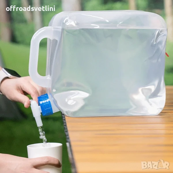 Удобна и практична сгъваема туба за съхранение и пренасяне на вода. Изработена от здрава, безопасна за хранителни продукти пластмаса. Сгъва се компактно, когато не се използва, и е идеална за къмпинг, пикник, пътувания или извънредни ситуации. Вграденото кранче позволява лесно наливане без разливане.