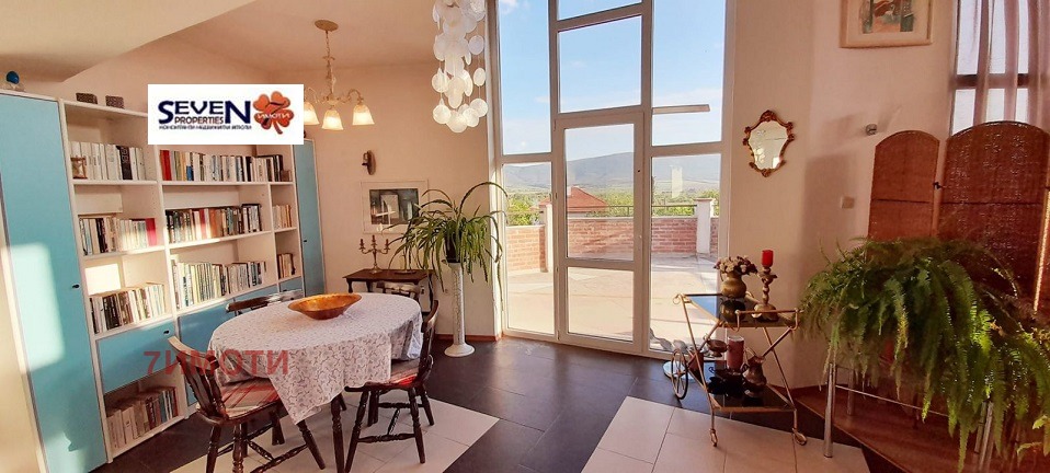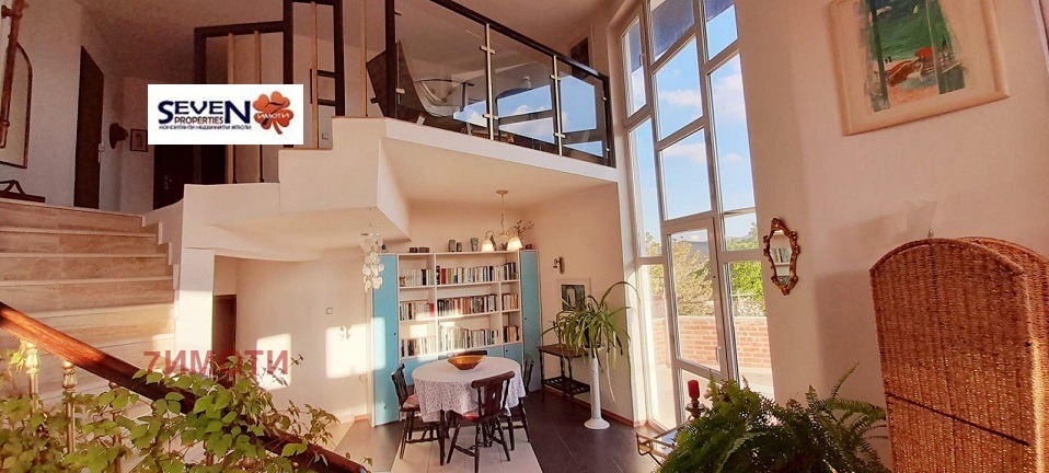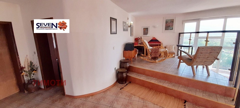 Представяме Ви: къща на три нива с раздвижена архитектура, разположена в равен двор с площ от 700кв.м. с обособени паркоместа. Имота представлява два самостоятелни апартамента, свързани с вътрешно стълбище и същевременно със самостоятелни входове и партерно ниво. Къщата предлага: 4спални, 4санитарни помещения, 2кухни с трапезарии, 2дневни и тераса - 30кв.м с прекрасна гледка. Къщата е напълно обзаведена и оборудвана. Отопление: парна инсталация и камина с водна риза за дърва, допълнително климатици. Настилки -керамика, ламиниран паркет и дюшеме. Къщата е на асфалтова улица с целогодишен достъп.