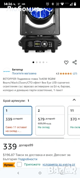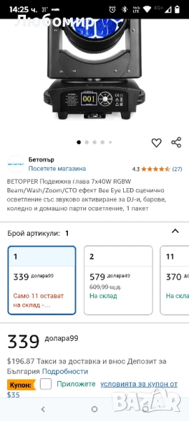BETOPPER Подвижна глава 7x40W RGBW Beam/Wash/Zoom/CTO ефект Bee Eye LED сценично