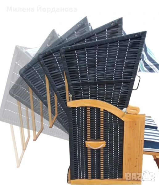 Размери: 165 x 120 x 90 cm (ВxШxД)Височина на облегалката: 92смДебела подплата на седалката (без подсилване): 6,5 см, с подсилване: 8 смТегло: приблТовароносимост: 200кгКорпус от сърцевина от иглолистна дървесина, от гарантирано култивирани дърветаКалъфи от полиестер (260g/m²)Ракита от полиратанПокривало от плат за сенникРазмери на всяка възглавница за врат: 35x16x9смРазмери на всяка облегална възглавница: 33x33x14смПлажен стол DELUXE синьо/светло синьо/бели ивици е истинско предимство за всяка стая. Със своите размери от 165 x 120 x 90 cm (височина x ширина x дълбочина) и тегло от около 47 kg, това е стабилна и здрава мебел, която има товароносимост до 200 kg. Възглавницата за облегалка е с комфортна височина от 92 см, докато седалните възглавници са с дебелина 6,5 см без подсилване и 8 см с подсилване. Корпусът е изработен от висококачествена иглолистна дървесина. Калъфите са изработени от издръжлив полиестер (260g/m²), а полиратановата тъкан придава на мебелта вечна елегантност.