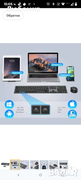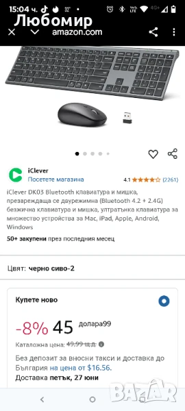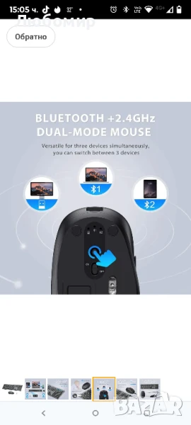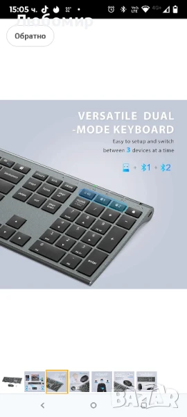 iClever DK03 Bluetooth клавиатура и мишка, презареждаща се двурежимна (Bluetooth 4.2 + 2.4G) безжична клавиатура и мишка, ултратънка клавиатура за множество устройства за Mac, iPad, Apple, Android, Windows