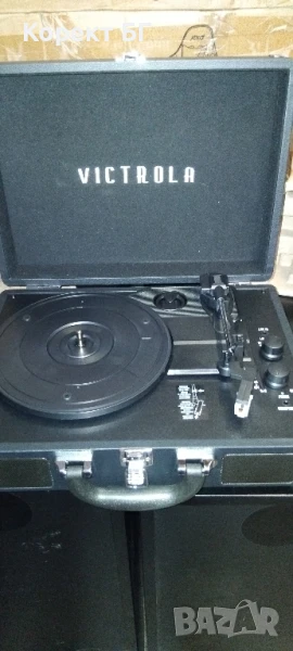 Нов грамофон Victrola VSC-550BT с Bluetooth и вградени говорители.Продавам нов грамофон Victrola VSC-550BT. Устройството е внос от чужбина и не е използвано. Подходящ е за подарък или за лична употреба. Ретро куфарен дизайн с модерни функции. 3 скорости: 33 1/3, 45 и 78 оборота в минута. Вградени стерео говорители. Bluetooth връзка за пускане на музика от телефон RCA изход за външни колони. AUX вход и изход за слушалки. Автоматично спиране на тонарма Удобен за пренасяне с куфарен дизайн и дръжка. В оригинална опаковка Цвят: (черен)
