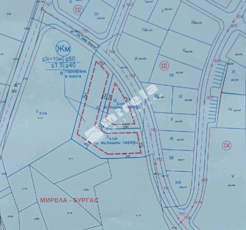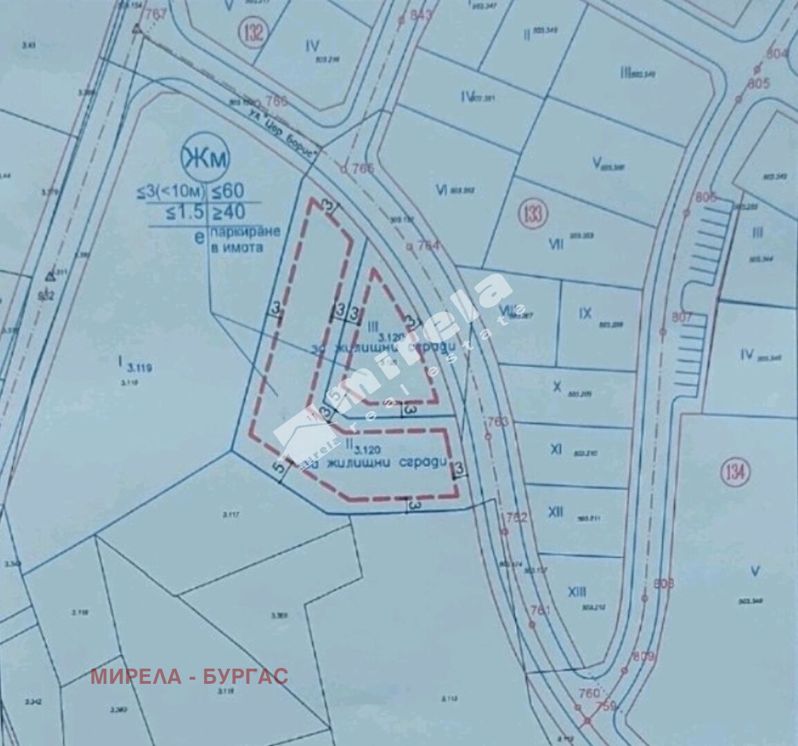 ПАРЦЕЛ I: 1635 кв.м; Плътност 60%; кинт 1,5; Височина до 10 м