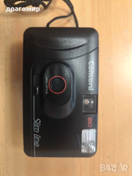 продавам лентов фотоапарат, работи, с оригинален кожен калъф,Concord Slim Line 850, работи с две батерии АА по 1, 5 v, имам още много други фотоапарати, камери, обективи, чанти, светкавици, батерии, зарядни устройства, касети, филтри, ремъци, ленти, при закупуване на повече неща отстъпка
