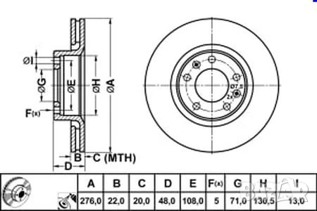 Диск спирачен преден дeсен/ляв за CITROEN XM; PEUGEOT 605 2.0/2.1D/3.0 05.89-10.00г.№ C1241V