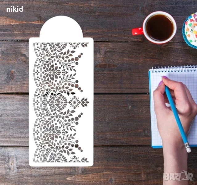 шаблон за торта,кекс и всякакво изкушение,което чрез тях става още по-красиво с пудра захар ,спрей или какао се ръси върху тях и се получава избраната форма,след което се премахва за многократна употреба