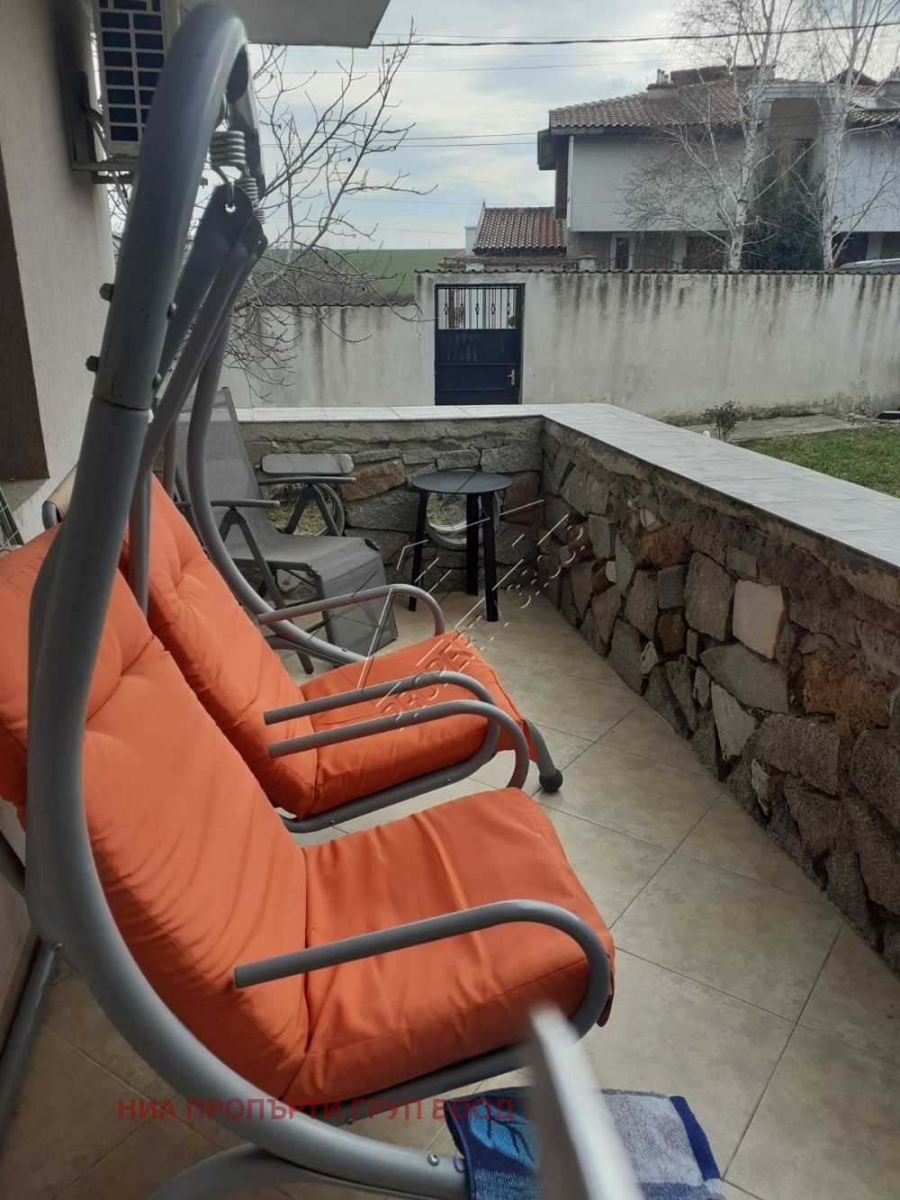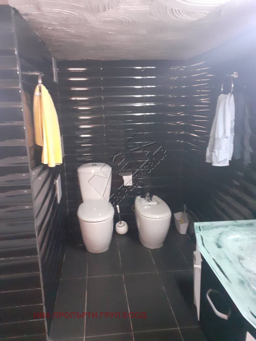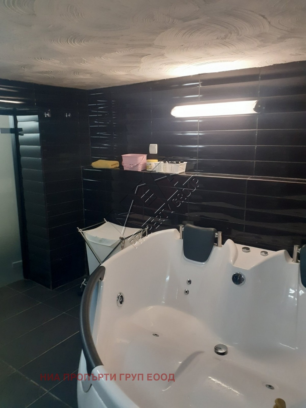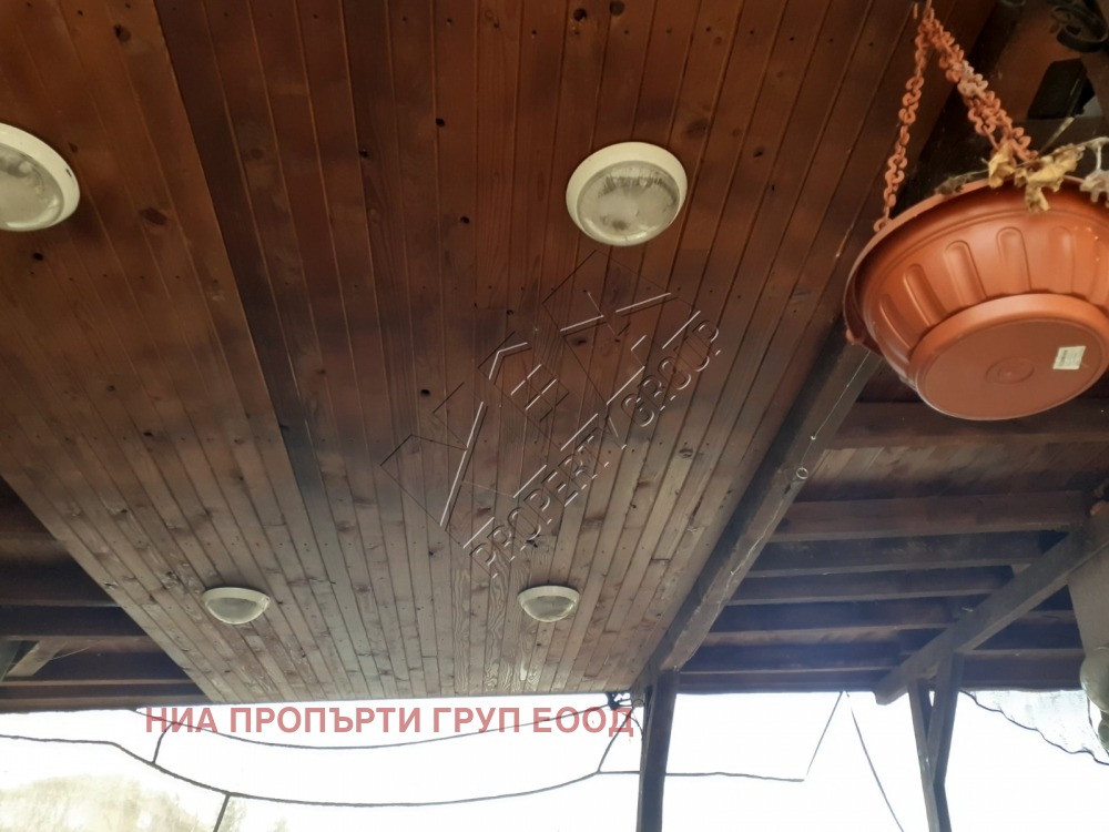 билярдна маса и панорамна гледка, както към градината, така и към околностите на селището. В сутерена са разположени баня с масажна вана и WC, зала за фитнес, в която има изградена камина и лесно може да се преобразува в механа. Общата площ на имота е 150м2, които предлагат три обзаведени спални, още два санитарни възела с нова керамика, смесители и аксесоари. Налично е и подпокривно пространство, позволяващо складиране на рядко използвани вещи. Всички стаи са климатизирани, с PVC дограма и топлоизолация. Монтирани са охранителни камери.