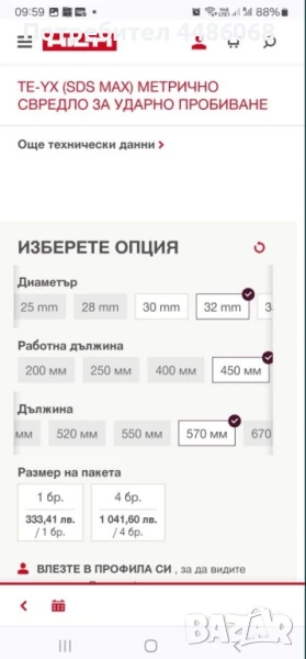 Hilti SDS MAX TE YX свредел за бетон 32мм → Обява 50605091
