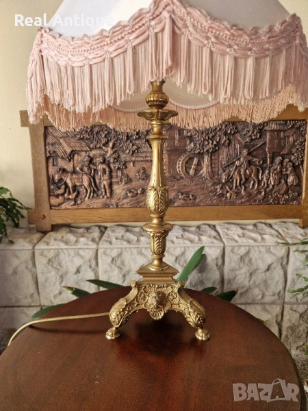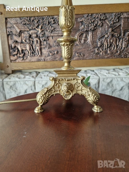 Продавам превъзходна много красива голяма антикварна бронзова настолна лампа в перфектно състояние без никакви забележки. Тежка здрава масивна. Височина 88 см. Прекрасно допълнение към интериора на Вашия дом офис вила ресторант хотел. Подходяща и за подарък. Работя с всички куриери. Отговарям бързо.