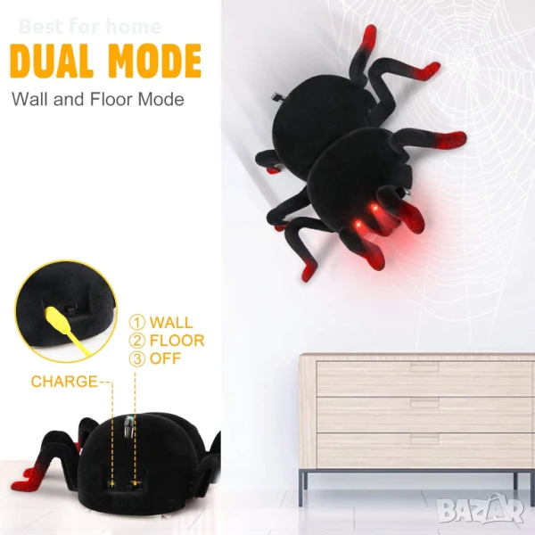 Реалистична играчка с външен вид и тревожност: тази дистанционно управлявана играчка паяк пълзи като истински паяк, а реалистичната ѝ форма и външен вид винаги могат да изплашат приятелите и семейството ви. Колко забавно. Изплашете ги.