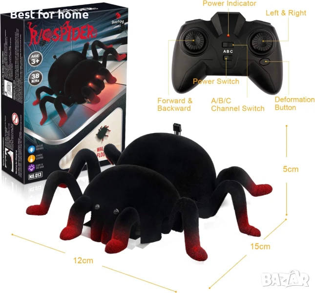 Baztoy Дистанционно управляем паяк с функция за катерене по стена