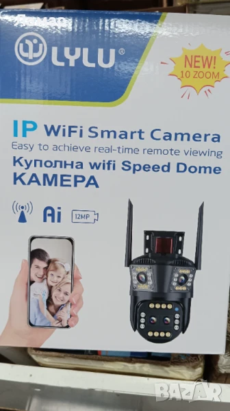 Тройна IP камера с двойна леща 10 zoom зум WiFi iCSee безжична камера 12MP