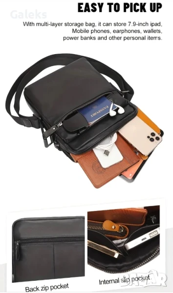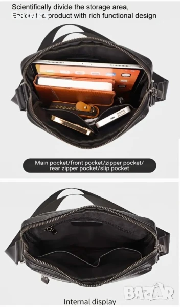 Практична, Красива, Универсална и Елегантна мъжка кроссбоди чанта дебела естествена първа кожа!