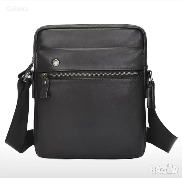 Мъжка елегантна, Крос-боди кожена чанта с презрамки /Черна естествена кожа!