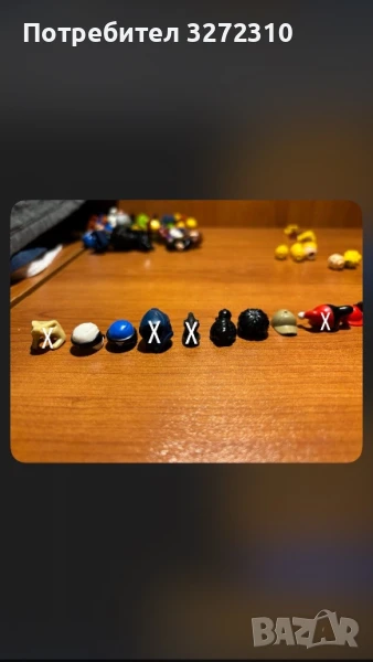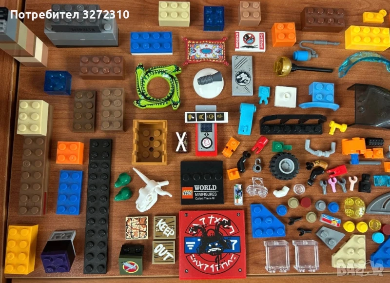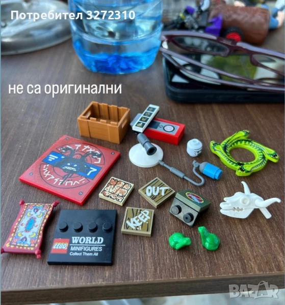 Дребни части и фигурки на LEGO. Маркирала съм за улеснение под снимките кои от частите са от оригиналната серия на Лего и кои не