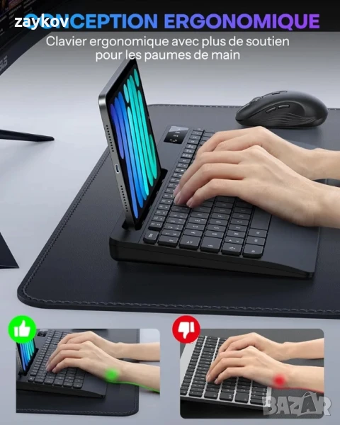 OMOTON AZERTY Безжична клавиатура, пълна ергономична клавиатура → Обява 50607762